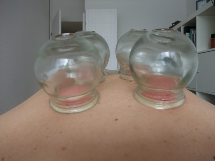 Beim Schröpfen wird mittels Vakuum, welches beim Aufsetzten des Schröpfglases entsteht, die Qi und Blut Zirkulation angeregt.