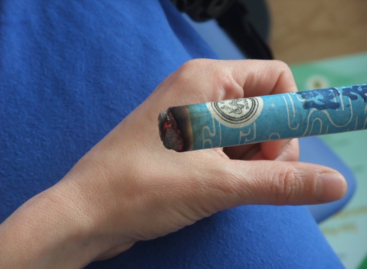 Bei der Moxibustion wird über den Akupunkturpunkten Moxakraut (Beifuss) abgebrannt. Durch die langsame Verbrennung entsteht eine angenehme Wärme welche die Punkte stimuliert. Diese Methode wende ich vor allem bei Kälte-Zeichen an.